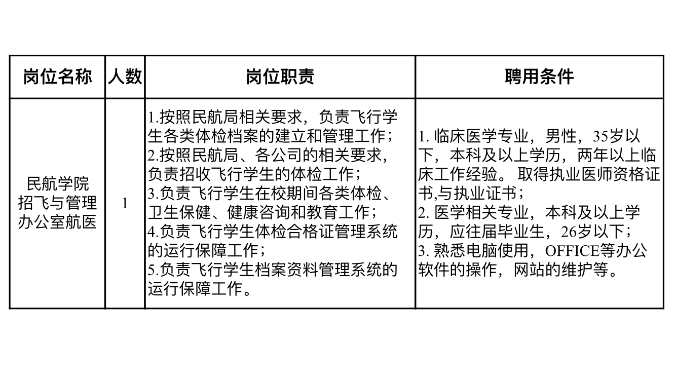 根据工作需要,二次元 拟以劳务派遣方式招聘航医1名,具体要求和工作职责如下: