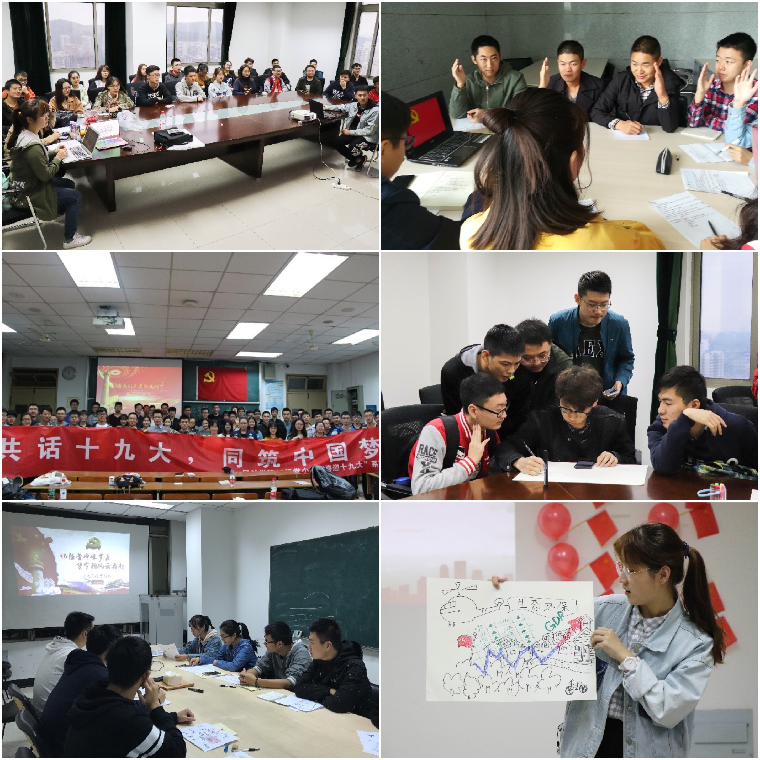 与此同时,学院还积极组织各年级以“十九大寝室直播间”、“同班级同看十九大”、“师生一起看十九大”等形式一起观看十九大开幕式及相关专题报道。本科生各年级开展“一党一心、一章一弛” 党章学习交流会,共同学习修订版的党章。研究生围绕“献礼十九大,学思悟行共逐梦,砥砺奋进续华章”开展十九大学习周活动,提振精气神,筑牢学生党支部的“红色堡垒”。