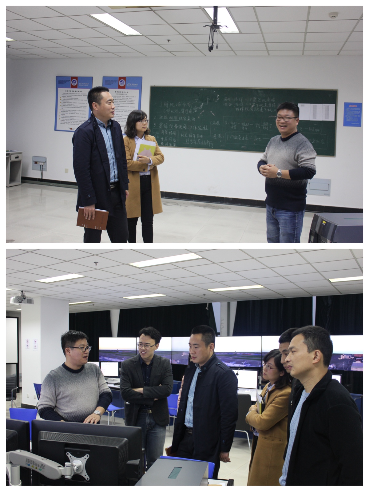 交流会分为四个部分,第一部分,交流情况,提出问题,首先,空管系主任田勇具体介绍了空管系的基本情况、空中交通管理与签派专业培养方案、就业方向及教学实践等,之后各低年级辅导员向专业老师解读了各自年级的学习成绩报告,毕业班辅导员汇报了就业情况;经过充分讨论,双方一致认为目前存在专业学生生源数量不足、学生学习动力不足等问题;第二部分,分析原因,提出解决措施,从招生工作到教学实践管理,双方就如何提高生源质量、加强实践教学管理等问题进行了讨论;其中,在招生宣传工作方面,学院党委副书记李和新提出“走出去”和“引进来”的发展战略来加大专业宣传力度;在教学安排和管理方面,系教学老师提出增强教学评估互动、调整专业课程安排等建议来解决学生实际问题。经过热烈的讨论,双方在日常管理中进一步强化请销假制度、查课制度的重要性上达成了共识;第三部分,搭建平台,关注学生发展,双方就目前已有的模拟空管大赛的内容和形式进行了探讨,同时,提出在教学管理中加强与企业合作的必要性;双方在邀请杰出校友举办讲座、开设空管大讲堂等形式为学生的全面综合发展提供平台等方面达成共识。第四部分,参观空管实验室,在系主任田勇带领下参观了系实验室,在详细讲解和现场演示模拟空中管制的过程中,学生工作人员对空中交通管理与签派专业有了更形象的了解和深刻的认知。