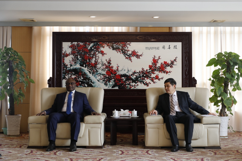 开班仪式前,校长聂宏亲切会见了刚果(布)民航局局长DZOTA Serge Florent、中航国际航空发展有限公司(以下简称“中航国际”)高级专务金星一行。