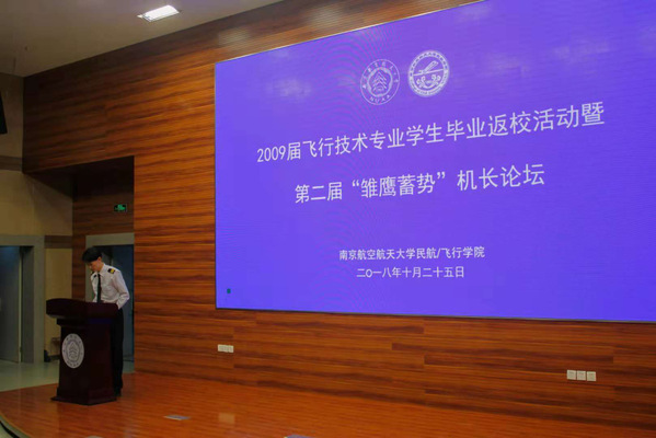 2018年10月25日,2009届飞行技术专业学生毕业返校活动暨第二届“雏鹰蓄势”机长论坛在将军路校区一号楼四楼报告厅精彩开讲。五十余名南航大毕业的优秀机长校友重返母校,担任本期机长论坛的开讲嘉宾,为学生现场教学开飞机的知识。二次元 党委书记徐福民、党委副书记李和新以及学院师生代表400余人参加了本次活动。