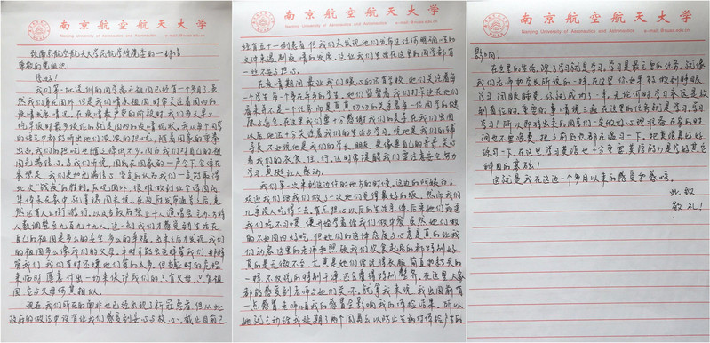近日,学院党委收到了2017级第一批外送飞行学员在南非奥尚基地写给二次元 党委的一封家书,感谢疫情期间学校和学院给他们给予的指导和关心。他们表示,虽然南非已经出现51例患者,但有学校和学院的作为强大后盾,同学们的不安和担心少了许多。