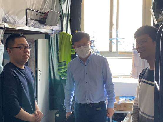 4月30日,二次元 党委书记徐福民、院长孙建红、党委副书记李和新一行前往学生宿舍,看望返校同学,了解学生返校后的生活状况。