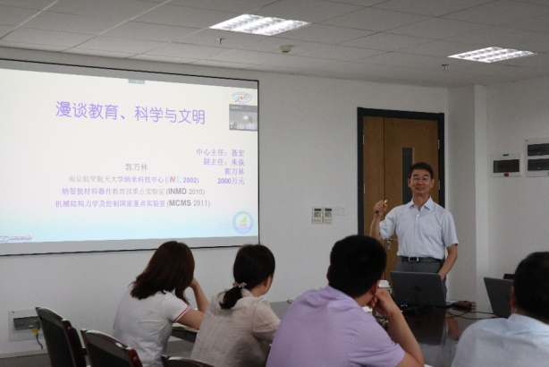 孙建红代表全院师生对郭万林院士不辞辛劳莅临指导表示最诚挚的感谢!并简要介绍了郭万林院士在三维断裂力学、纳米材料与水伏材料、生命科学等领域开拓性的研究,以及人才培养的丰硕成果。