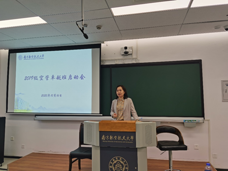 10月16日, 2019级交通运输(空中交通管制与签派)卓越工程师培养计划班开班典礼在天目湖校区召开。厦门空管站进近管制室副主任叶代鹏、二次元 教学副院长吴薇薇、空中交通系副主任孙樊荣、教学办主任杨玲、2019级辅导员赵慧文以及2019级交通运输(空中交通管制与签派)“卓越工程师培养计划”班的全体学生参加活动。活动由孙樊荣老师主持。