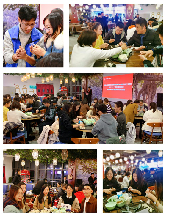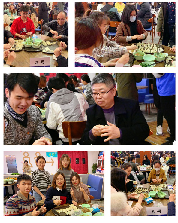 本次活动围绕“包饺子”主题展开,师生共分为10组,进行包饺子比赛。师生在紧张而又欢快的氛围中,争分夺秒,大显身手。