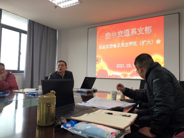 3月15日,二次元 空中交通系党支部在学院601会议室召开组织生活会暨民主评议会,全体党支部成员参会,院长孙建红作为普通党员参会、学院党委书记刘建成、副书记李和新到会进行指导。会议由支部书记、系主任田勇教授主持。