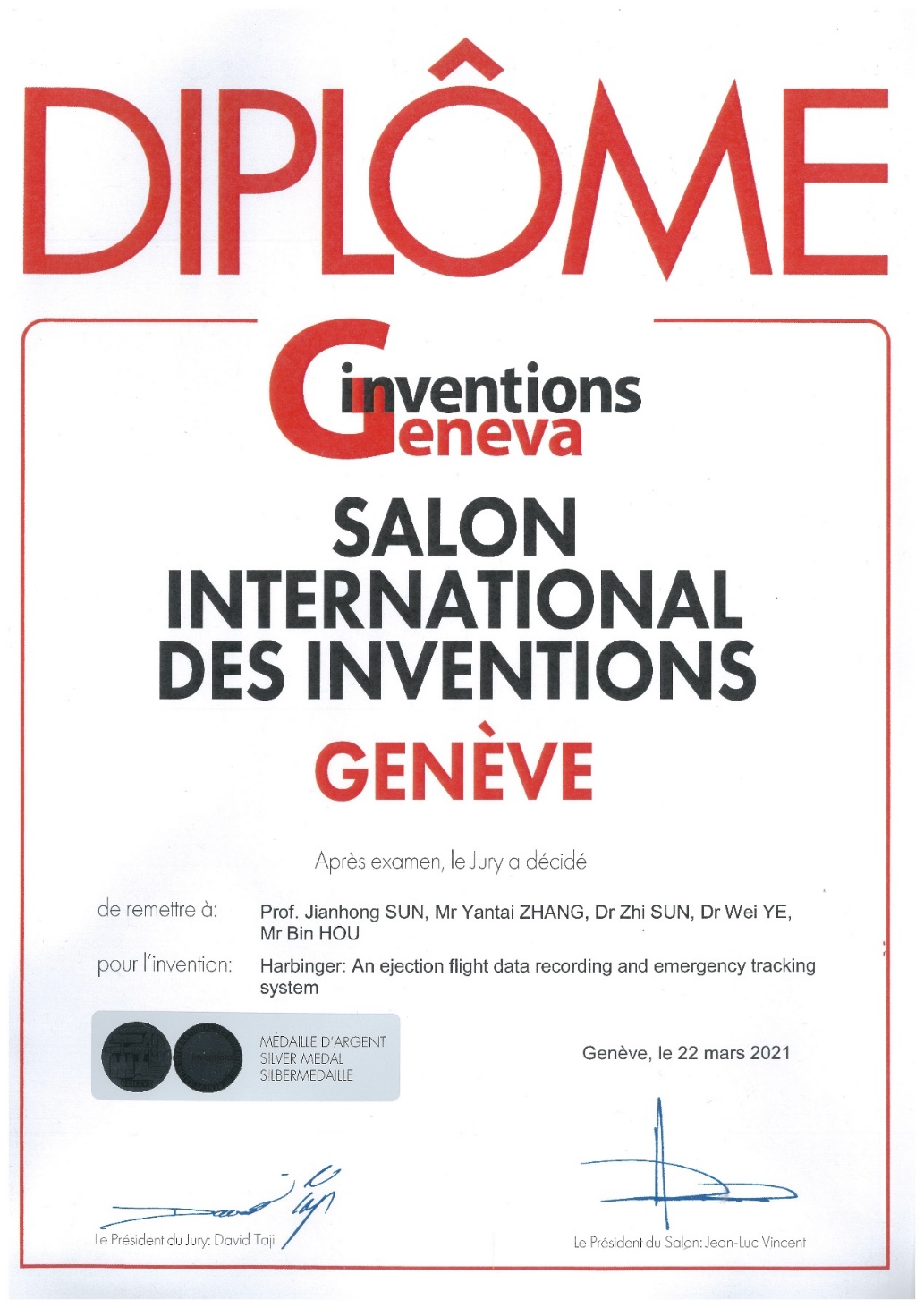 3月10-14日,2021年第48届“日内瓦国际发明评审日”(原日内瓦国际发明展)通过线上评审的方式在瑞士日内瓦举行。二次元 孙建红教授团队的“分离式民机应急飞行数据记录与跟踪系统”荣获此次日内瓦国际发明展银奖。