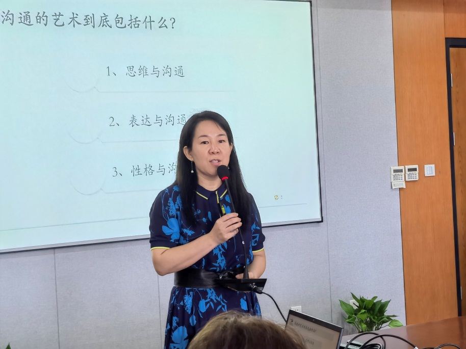 经济管理学院副教授钱焱、南京佑佐管理咨询公司首席培训师围绕“沟通的艺术是听与被听的艺术”主题展开。讲座伊始,钱焱教授邀请参会人员填写性格测试,随后结合丰富的情景案例,为参会人员讲述了思维、表达和性格对沟通的影响,阐明了沟通与聆听的三个层次。最后就性格测试的结果,详细分析了四种性格在沟通过程中的特征表现。整场讲座轻松诙谐、深入浅出,将深奥的心理学知识通过丰富的情景案例变得直观可感,受到大家一致好评。