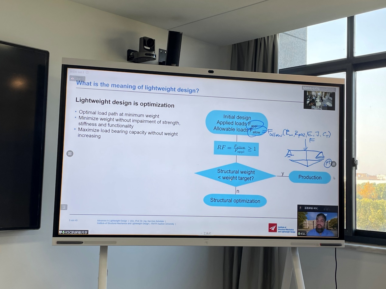随后,Schröder教授为师生们带来了题为《New Developments in Lightweight Design》的精彩讲座。Schröder教授围绕轻量化设计及其目标,在讲解的过程中,不仅借助实物展开了具体说明,还使用公式进行了理论分析,在材料、结构层面介绍了重量优化的基本规则以及设计中的成本管理等。