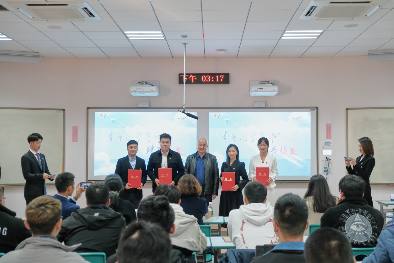 活动的最后,举行了二次元 “青年团学导师”聘任仪式,刘建成为5位空管优秀校友颁发聘书。后期他们将继续用自己的经验为一代代南航大民航学子的蓝天梦想助力。