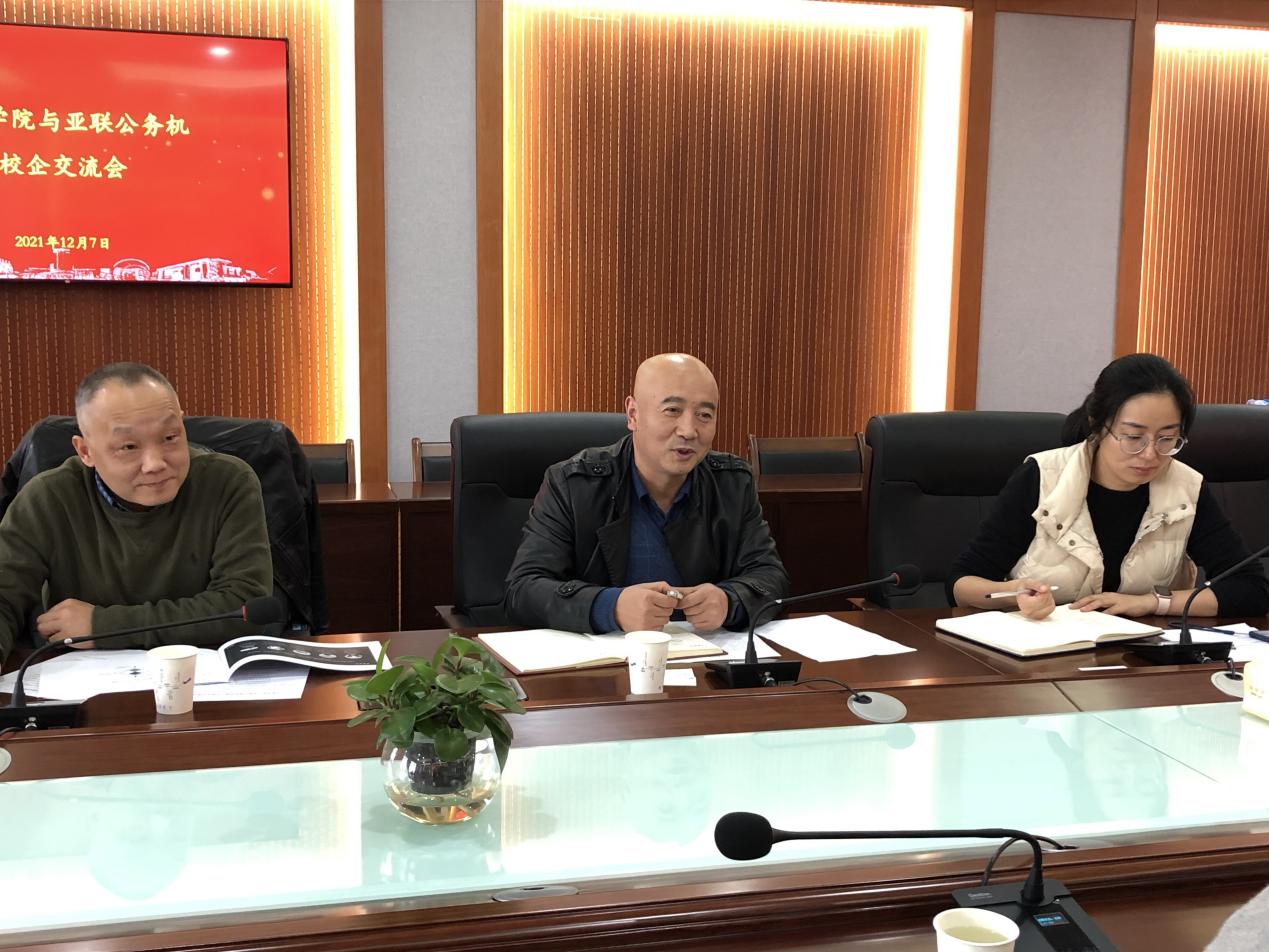 陈国栋、王艳分别介绍了公司和学院的情况,李艳军老师从专业的角度谈了公务机行业的特点和校企双方在项目研究、实习实践等方面能够开展的合作。