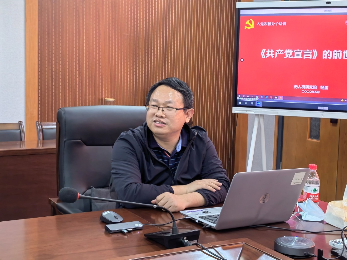 开班动员会后,学院邀请无人机研究员党委副书记、副院长杨波作《<共产党宣言>的前世今生》专题党课宣讲。杨波由“为什么学党史”“为什么学《共产党宣言》”“学习党史和《共产党宣言》有什么用”三个问题引入,强调学习马克思主义基本原理是共产党人的必修课,我们学习了解《共产党宣言》,就是要深刻感悟和把握马克思主义真理力量,坚定马克思主义信仰,把宣言中蕴含的科学原理和科学精神运用到统揽伟大斗争、伟大工程、伟大事业、伟大梦想的实践中去。随后,他从起源、起名缘由、诞生与内容、关键词和在中国的作用影响五个方面深度解读《共产党宣言》。并对入党积极分子们提出期望,要学好用好《共产党宣言》,熟练掌握马克思主义立场、观点、方法,不断提高马克思主义理论素养,让初心刻骨铭心,让使命融入生命。