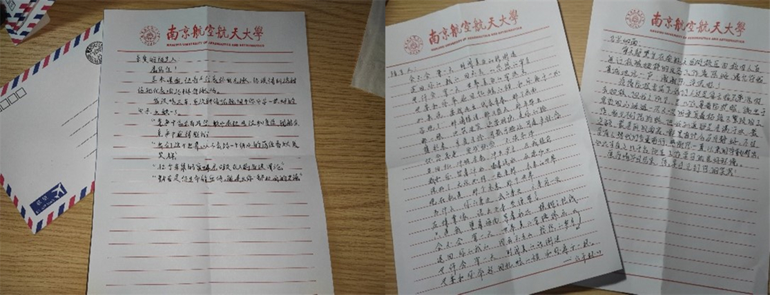 “数程山路长侵夜,千里家书动隔秋。”来自0721701的一位同学表达了自己的想法:“本次活动中我们获益良多。我们有幸生活在一个网络发达的时代,沟通不再成为难题。上大学,是许多人第一次离父母这么远、这么久。借由此次活动,同学们写下一封家书,表达对父母的思念、感谢,从家人那里寻找前行的力量。”