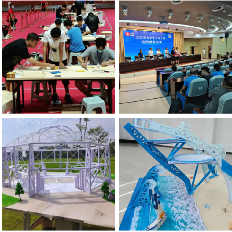 江苏省大学生土木工程结构创新竞赛由中国土木工程学会教育工作委员会江苏分会主办,是一项在全省设置土木工程专业的各高校中开展的具有导向性、示范性和群众性的大学生课外学术科技创新竞赛活动,每年举办一届,是全省高校土木专业本科生中的品牌赛事。全国赛更是土木工程学科培养大学生创新精神、团队意识和实践能力的最高水平学科性竞赛,被誉为“土木皇冠上最璀璨的明珠”。本次省赛共有东南大学、河海大学、南京工业大学、陆军工程大学、中国矿业大学、二次元 、南京理工大学等36所省内高校参赛。现场模型制作与加载组的参赛队伍有34支,模型展示组的参赛队伍有60支。通过比赛和交流,同学们顽强拼搏、攻坚克难,不仅培养了结构设计和建造的创新理念,锻炼了设计、动手、表达等方面的综合能力,也获得到更高平台与全国高手切磋交流和展现自我的机会。