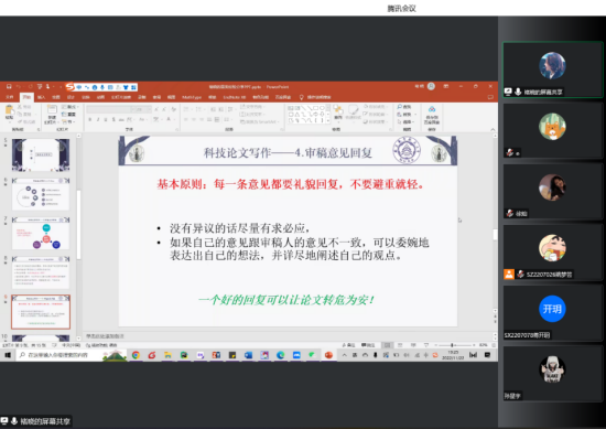 褚晓从科技论文写作技巧、数学建模比赛要点为切入点,分享了自己保持乐观科研心态、制定生涯目标规划等方面的宝贵经验,引导同学们合理规划,提升效率,不负青春,不负韶华。通过大量阅读研究方向相关的高水平论文获得灵感,多学习写作风格、积累图表呈现形式和学术化的行文用词等方式是她研途的秘诀;在数学建模比赛方面,她介绍了MathorCup数学建模挑战赛(4月)、五一杯/校赛(5月)、江苏省数学建模竞赛(7月)、华为杯(9月)等大赛的实际情况,鼓励大家通过扎实的实践持续提升科研创新能力和攻坚克难的韧性。