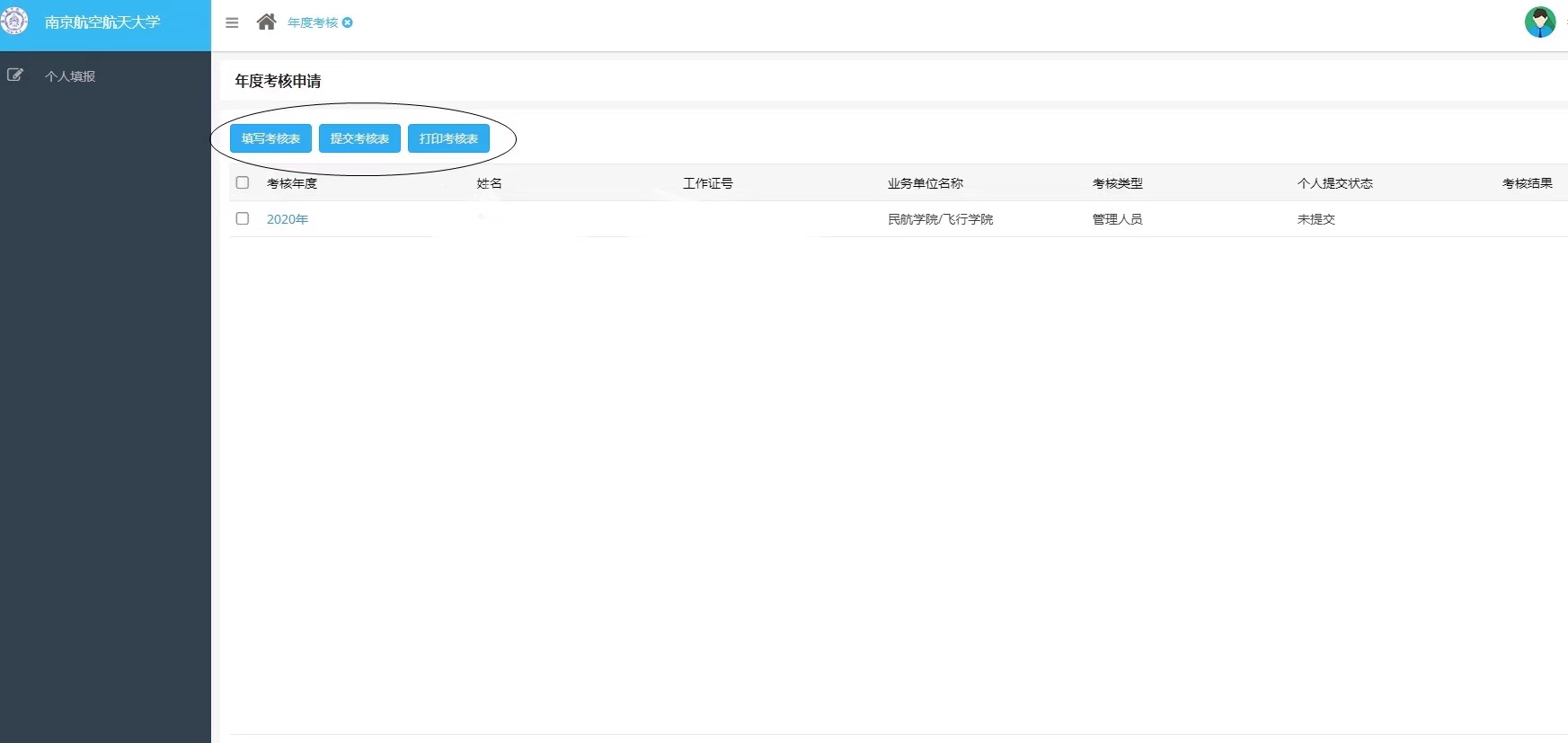 2.教职工需登陆学校的新版人事管理信息系统//ehr.2-ciyuan.org,登录名为职工编号,密码为学校统一身份认证密码),在“年度考核”模块(2022年12月12日起开放),填写个人年度考核表,并在线提交,并用A4纸正反面打印、签名后交至各系办主任处,由系主任签署单位考核评价意见后,统一交至学院。