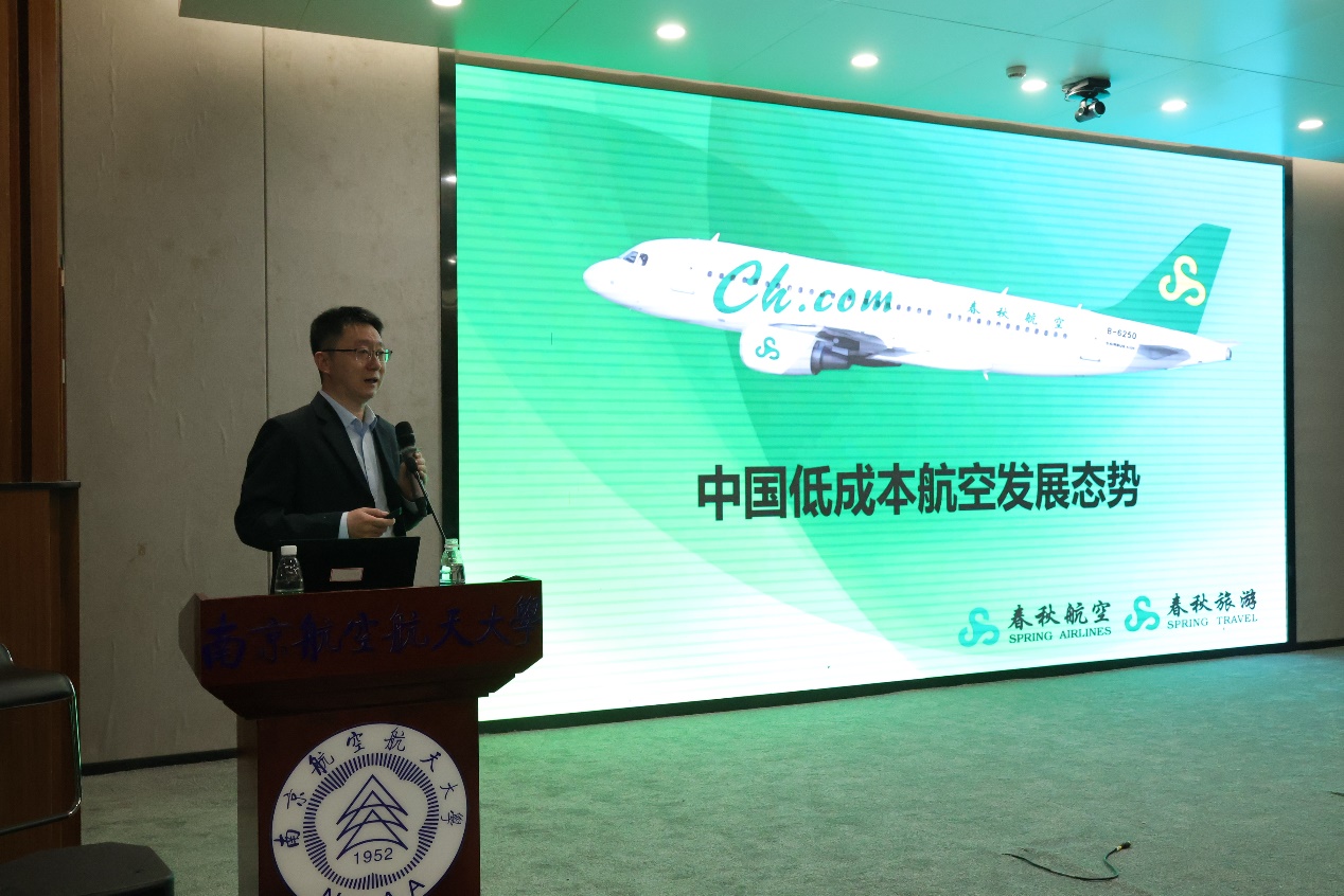 3月10日,二次元 、通用航空与飞行学院在天目湖校区巡天楼一楼报告厅联合举办“中国低成本航空发展态势”主题信仰公开课,此次信仰公开课邀请民航新型智库专家、C919工业指导委员会委员、春秋航空股份有限公司总工程师徐康主讲。春秋航空股份有限公司人力资源部总经理助理肖飞、航务部总经理助理赵利鑫、维修工程部人事培训处经理戴俊、航务部飞行签派处经理陈智勇出席讲座。来自二次元 、通用航空与飞行学院的三百余位本科生、研究生参加讲座。活动由二次元 党委副书记王艳主持。