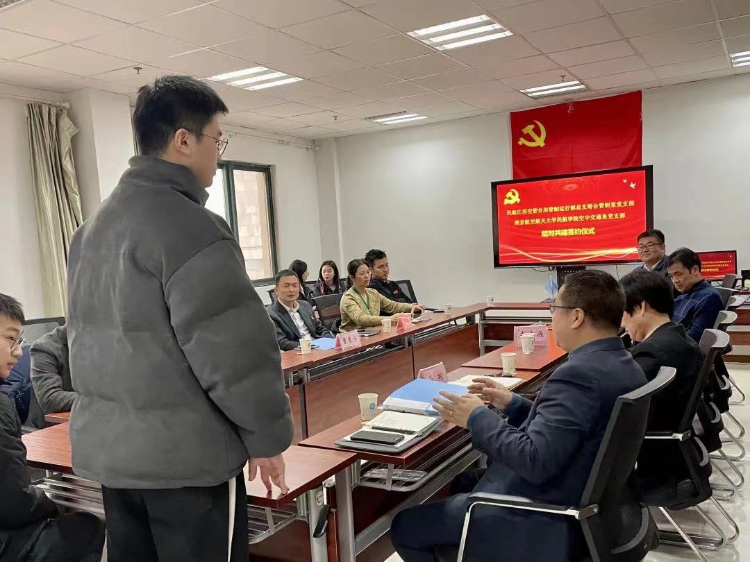田勇就江苏分局对二次元 空管系教学和科研工作的支持表示感谢。多年来,塔台党支部每年都会派高级教员参与空管系大四学生做程序、雷达和塔台管制模拟教学,两个党支部为响应习近平总书记的“培养高质量人才”的号召保持着良好密切的交流与合作。民航江苏空管分局党委李志源书记表示此次活动是在深入学习习近平新时代中国特色社会主义思想的实践之举,是在抓好党建工作中实现优势互补、共同提高的双赢之举。空中交通系多年来为江苏空管分局培养输送了112名优秀毕业生,从事管制工作人员82名,为分局工作高质量的发展做出了巨大的贡献。
