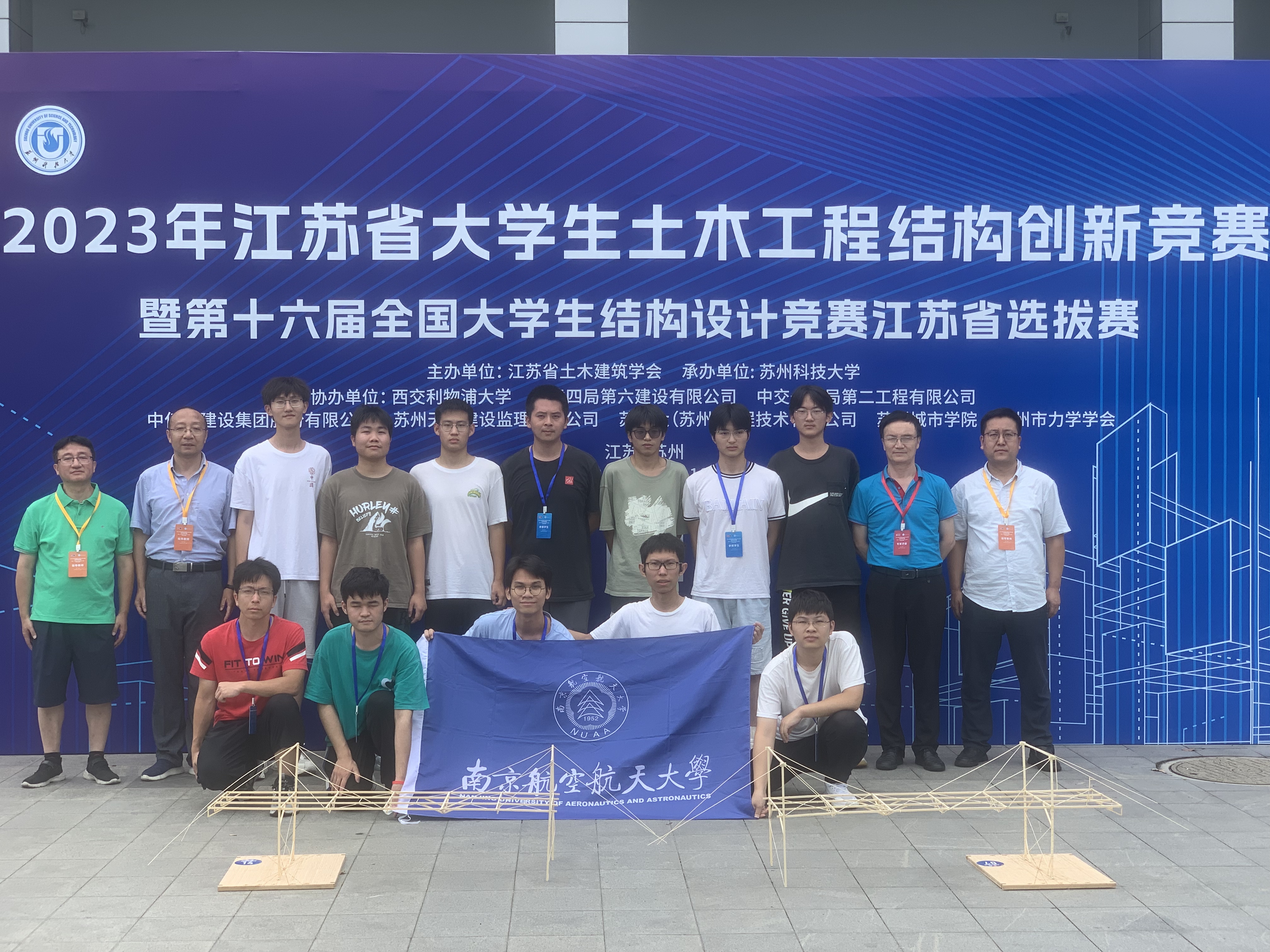 2023年7月13-16日,2023年江苏省大学生土木工程结构创新竞赛暨第十六届全国大学生结构设计竞赛江苏分区赛在苏州科技大学举行,我院由吴瑾老师领队,唐敢、王法武和程晔老师指导。