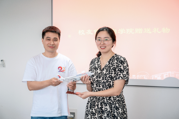 座谈会上,学院党委副书记王艳代表学院对“回家”的校友们表示热烈欢迎,向大家长期以来对学校和学院事业发展的关心支持表示诚挚感谢。她向校友们介绍了学院发展现状以及近年来在学科建设、人才培养等方面取得的成绩,希望广大校友多为母院发展建言献策、添砖加瓦。校友们共同回忆了求学时期的宝贵经历,对学校、学院的培养以及老师们的教诲表达了感谢,并为学院建院30周年发展取得的成绩感到由衷的高兴。座谈会的尾声,校友代表向学院赠送定制机模作为纪念,祝福学院在新起点、新征程中阔步前行,直上云霄。