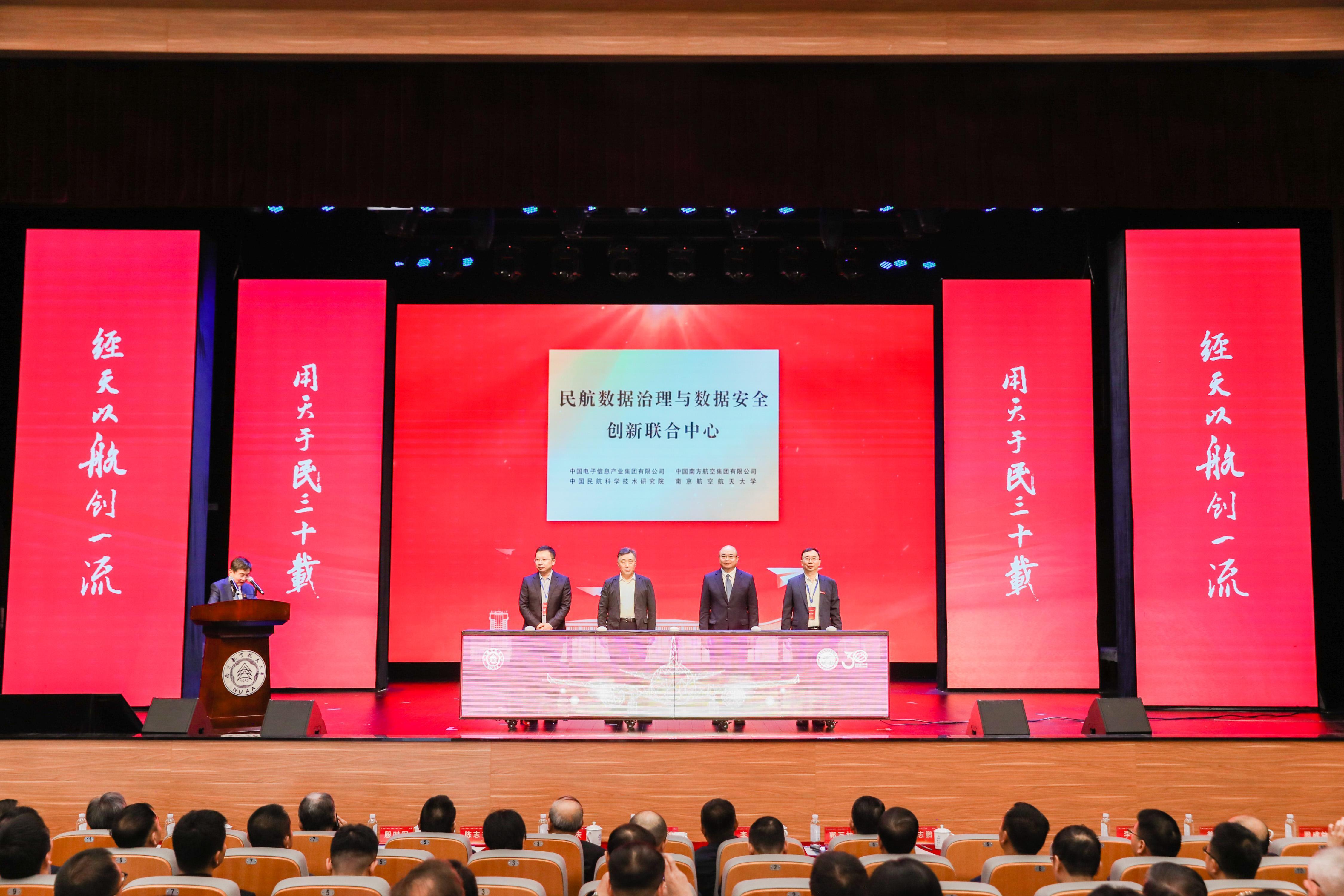 中国电子数据产业集团董事长陆志鹏、中国民航科学技术研究院院长李郁、中国南方航空集团有限公司总经理助理吴榕新、二次元 副校长姜斌共同为“民航数据治理与数据安全创新联合中心”签约并揭牌。联合中心将基于数据共享、资源共享、能力共建、业务共促、共同发展的建设原则,在民航领域内进一步落实国家大数据战略,全面深化产学研用融合,推动四方向一流研究院所、一流企业、一流大学迈进。