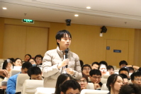 在互动交流环节,同学们热情高涨、踊跃提问,郝龙结合自身经历做了详细解答,对学弟学妹们的校园生活、专业学习和生涯发展等方面做细致指引。