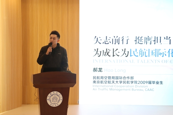 郝龙的公开课分为“雏鹰展翅”、“砥砺前行”、“厚积薄发”、“展望未来”4个篇章,与同学们分享自己从南航求学到逐梦职场的奋斗历程。回首校园时光,他结合自己的学习经验与学生工作经历,鼓励同学们保持终身学习的良好习惯,尤其要坚持提升英语水平、拓展国际视野,同时要做到知行合一,在课外实践活动中全面提升综合素质能力。回顾从业经历,他表示自己始终积极乐观应对不断到来的机遇与挑战,并勉励同学们做勤奋、踏实、正直的人,将南航优良的校风带到工作岗位中。讲到自己在中国民航国际化人才技能大赛中夺冠的经历,他表示,英语学习是一个厚积薄发的过程,耐力比爆发力更重要。最后,他结合自身经历,为同学们凝练了多条人生建议,勉励同学们以梦为马,不负韶华,在青春的赛道上奋力跑出属于当代青年的风采和成绩!