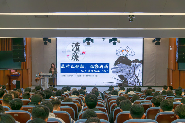 128日,二次元 举行“求学无捷径,唯勤与诚——从严谨学风说‘廉’”的廉洁治学主题讲座,邀请校内“青廉”讲师团成员、艺术学院党委副书记王宇宁主讲。学院党委副书记王艳、2023级本科生共计300余人参加活动。