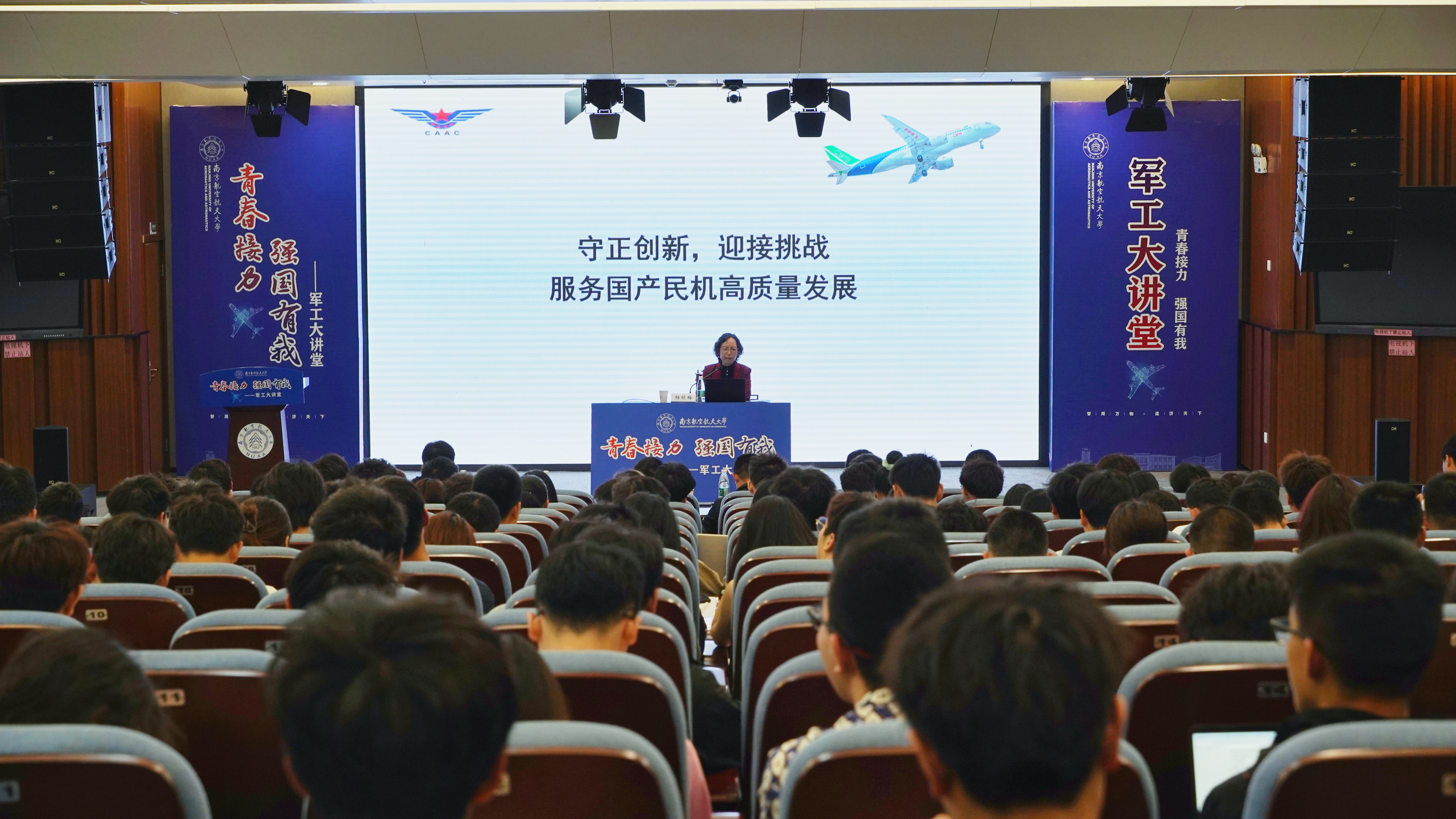 5月8日,我校举办第七期“青春接力、强国有我”军工大讲堂。中国民用航空局航空器适航审定司原司长、我校兼职教授杨桢梅为师生讲授了题为《守正创新 迎接挑战——服务国产民机高质量发展》的专题报告。我校天目湖校区党工委书记王伟华,二次元 党委书记李君,天目湖校区党工委副书记、学生处副处长贡海俊以及300余名师生代表参加活动,报告会由二次元 党委副书记王艳主持。
