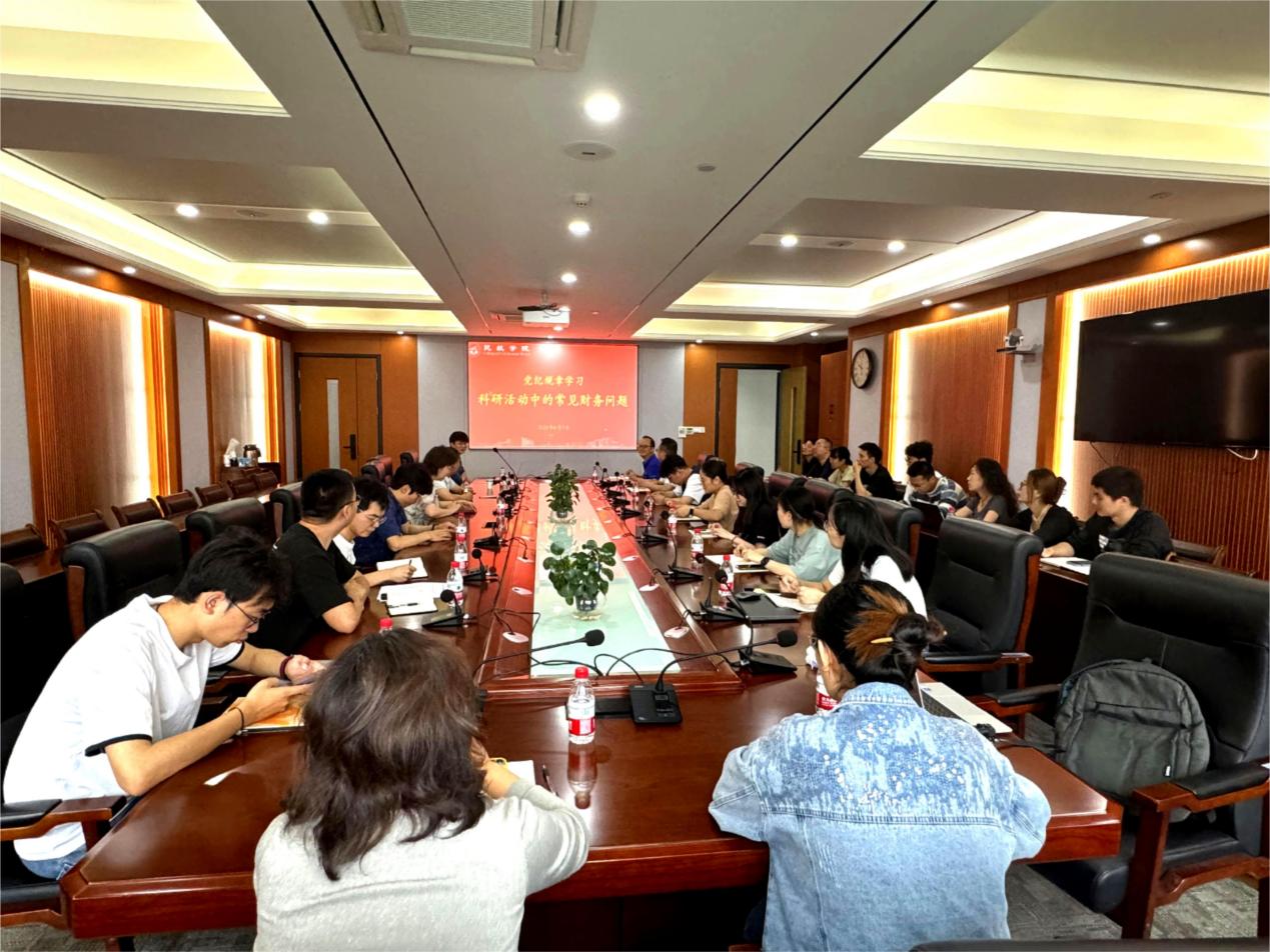 王龙龙从师生关切出发,以科研经费管理使用领域廉洁风险防控为重点展开讲解。王龙龙首先介绍了财务信息化平台使用及线上线下具体工作流程,并结合科研经费政策,重点介绍科研项目的资金管理办法、纲领性文件。针对常见的经费报销高频退单问题,进一步明确票据合法性、报账合规性、业务合理性与支付正确性等事项的报销规范,提升学院师生日常报销的规范化水平。最后对于科研经费管理中常见的财务问题,结合审计发现共性问题清单和典型违规案例,重点提示大家注意规范科研经费管理,坚守纪律底线,不越经费“红线”。