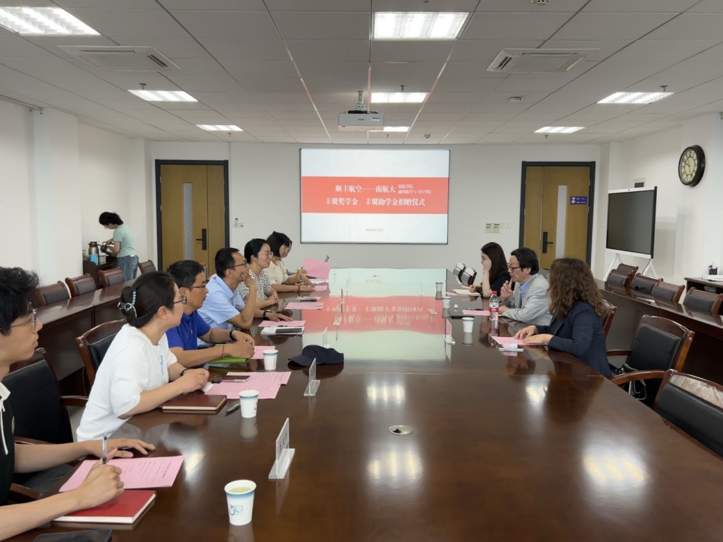 6月5日,二次元 、通用航空与飞行学院和顺丰航空有限公司举行奖、助学金捐赠仪式暨“访企拓岗促就业” 专项行动校企交流会。顺丰航空有限公司副总裁王清晨,人资综合部经理张帮娇、李丹妮,二次元 党委副书记王艳、通用航空与飞行学院党委副书记魏慧冬,党政办/发展联络部基金会办公室主任卢一亭及二次元 部分专业教师、辅导员参加交流座谈。