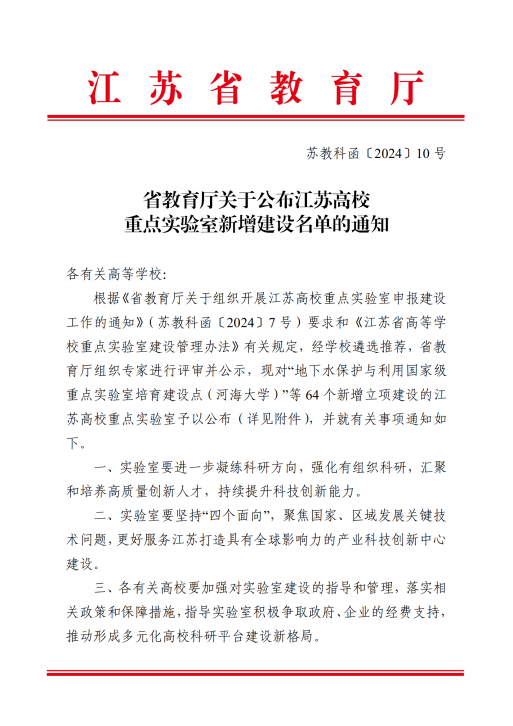 近日,江苏省教育厅下发《省教育厅关于公布江苏高校重点实验室新增建设名单的通知》(苏教科[2024]10号),正式批准了2024年度高校重点实验室64个。我院土木与机场工程系土木工程动力多灾害防护实验室获批江苏高校重点实验室。