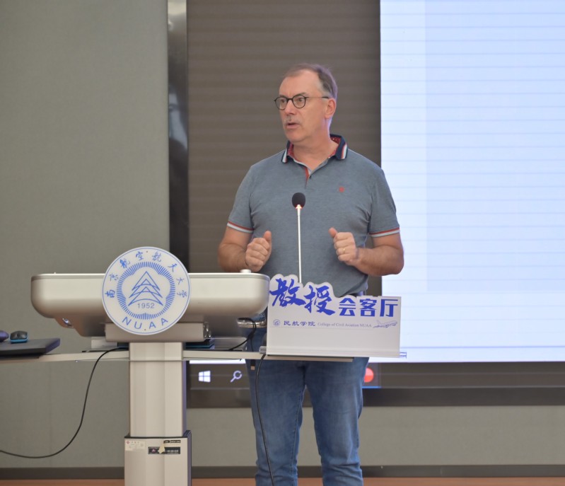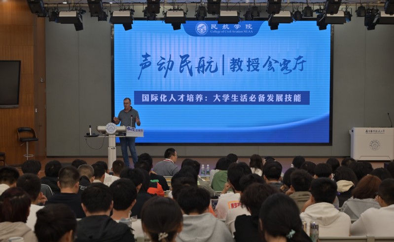 10月14日,二次元 在天目湖校区巡天楼二楼报告厅举办“声动民航·教授会客厅”活动。欧洲科学院院士弗兰克·维特洛克斯受邀主讲,本科生辅导员王雨薇及200余名本科生参加活动。活动由交通运输系主任胡荣主持。