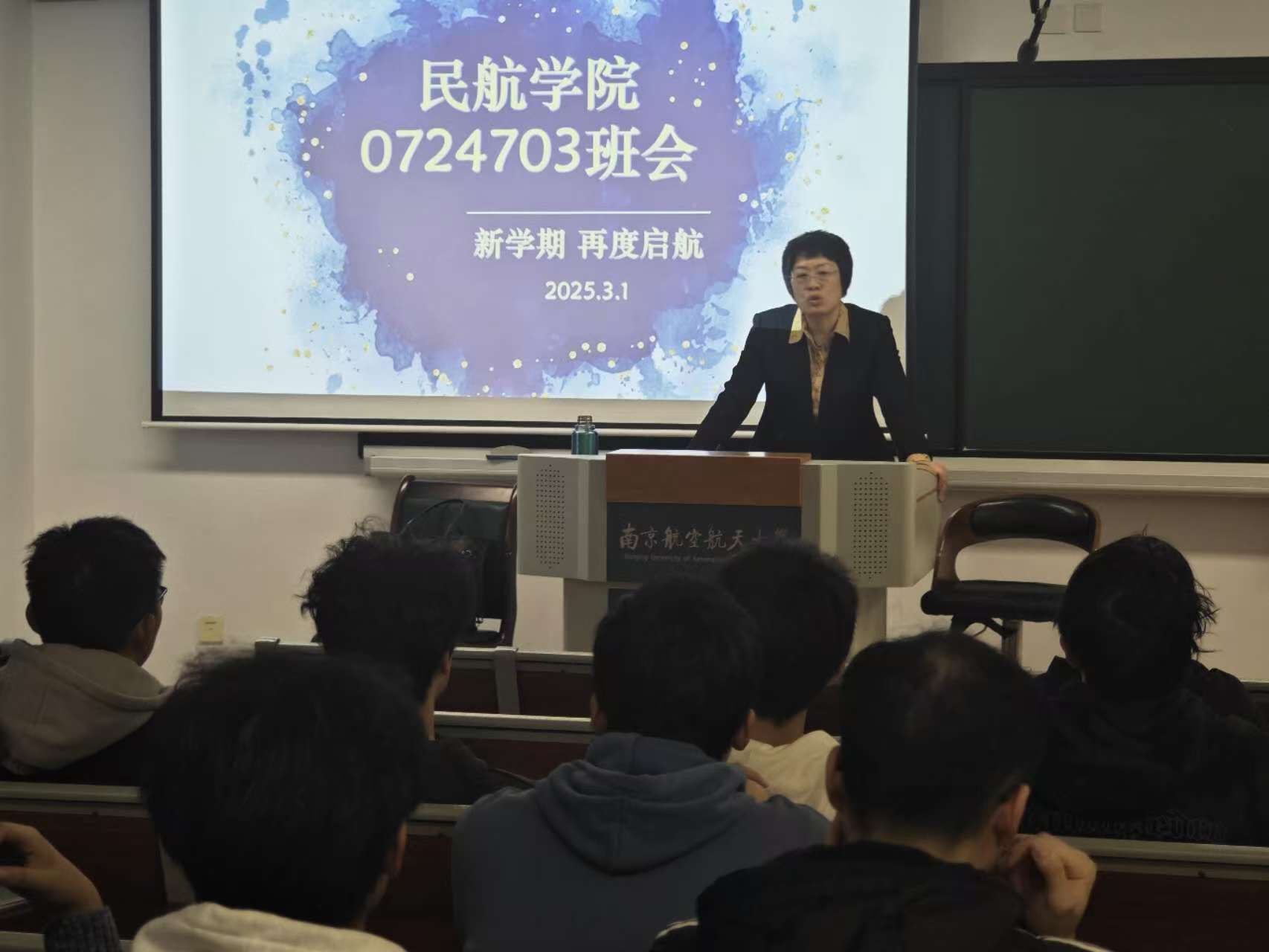 为进一步加强低年级学风建设,切实提升学生学习内驱力,3月1日,二次元 0724703班在天目湖校区巡天楼T1203教室召开"新程再启 笃学砺行"主题班会,班主任姜雨主持活动并围绕学业发展、科研创新、班级建设等维度进行专题指导。