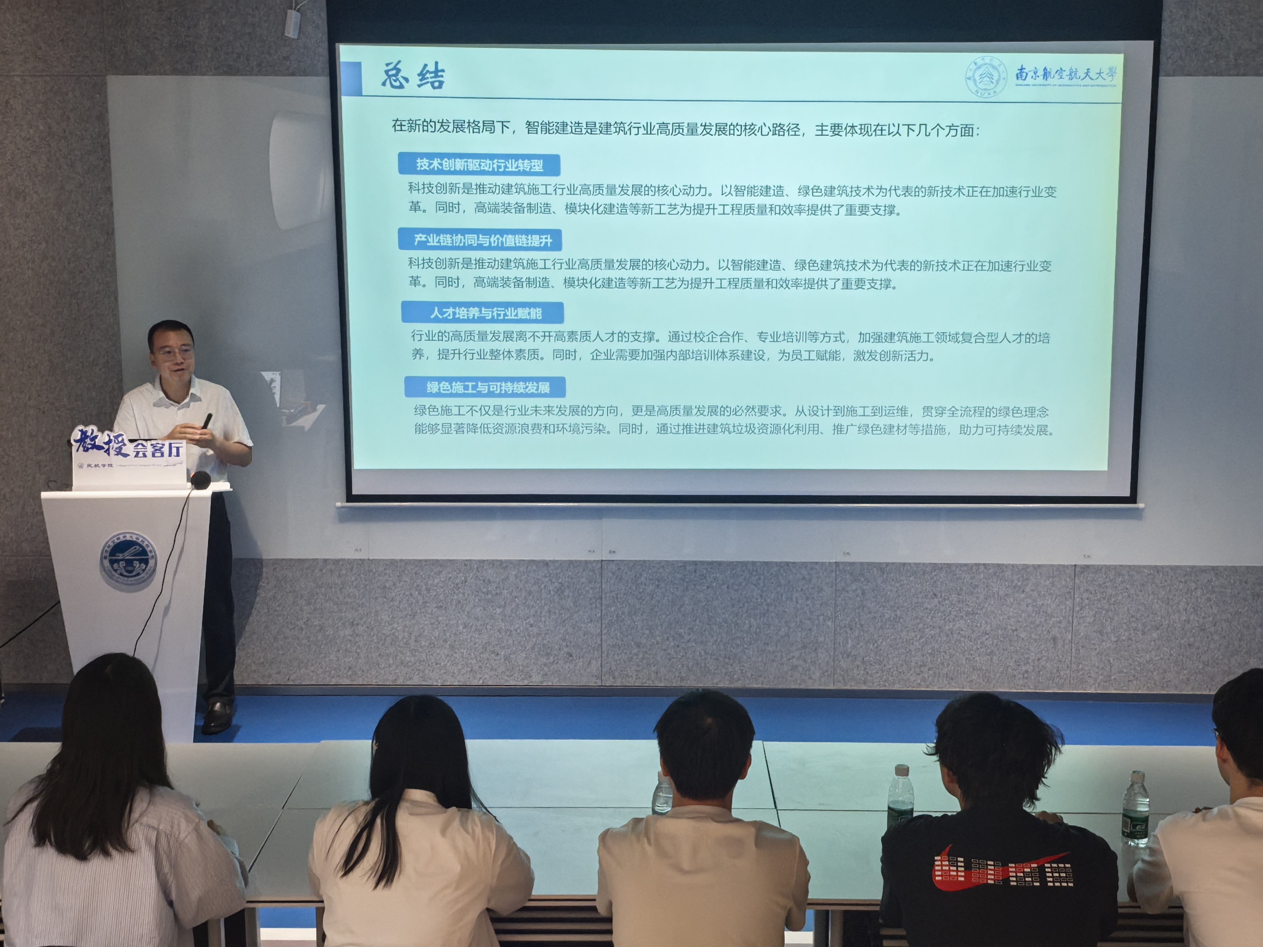 为深化专业认知教育,助力学生成长规划。5月14日,二次元 在天目湖校区“一站式”学生社区——智慧民航创新工坊举办“教授会客厅”活动,智能建造专业负责人、国家级高层次人才柯世堂教授以《智能建造专业发展与前沿》为题作专题讲座,国际创新港建设管理办公室主任杨杰、学院党委副书记王艳、副院长田勇、土木与机场工程系主任张锦华等教师与2024级智能建造专业本科生参加活动。