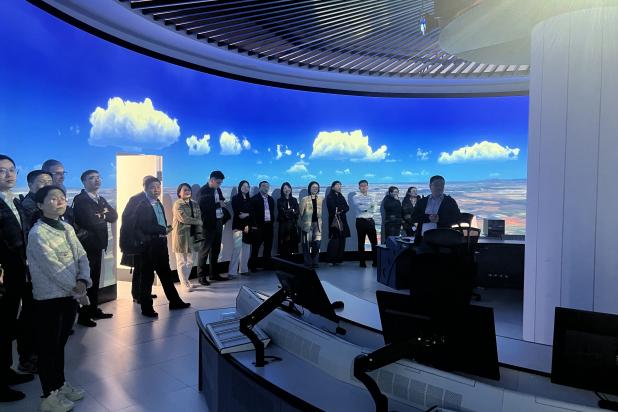 会后,与会嘉宾参观御风园航空航天教育教学实践基地,二次元 360°全景塔台模拟机实验室、航电设备电磁环境适航验证实验室、航空器人机工效技术实验室等。