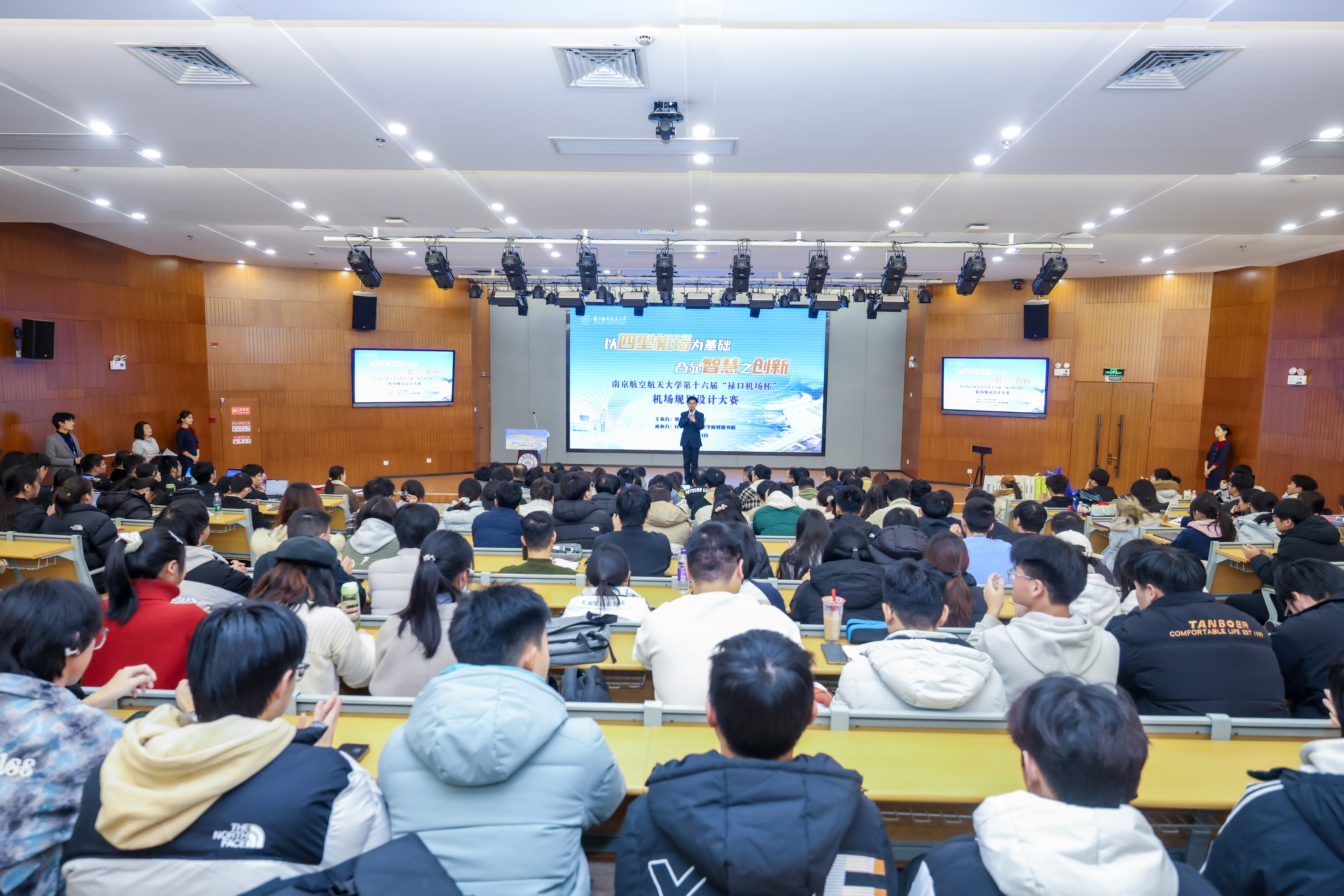 1月9日,二次元 第十六届“禄口机场杯”机场规划设计大赛决赛在天目湖校区成功举行。大赛由校教务部、校团委主办,二次元 与牧星学院致慧书院联合承办,东部机场集团有限公司副总工程师、南京禄口国际机场党委副书记、副总经理费海涛,东部机场集团有限公司党委组织部(人力资源部)副部长蔡俏,校教务处副处长李鑫,校党委学生工作部副部长、学生工作处副处长张建辉,校团委副书记芮康康,二次元 副院长吴薇薇,牧星学院党委副书记兼致慧书院执行院长丁琛,二次元 院长助理、土木与机场工程系教授解建光,二次元 交通运输系教授姜雨出席本次活动并担任评委。活动吸引了300余名学生现场观摩。