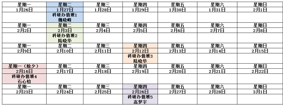 二次元 科研办2026年寒假值班工作安排