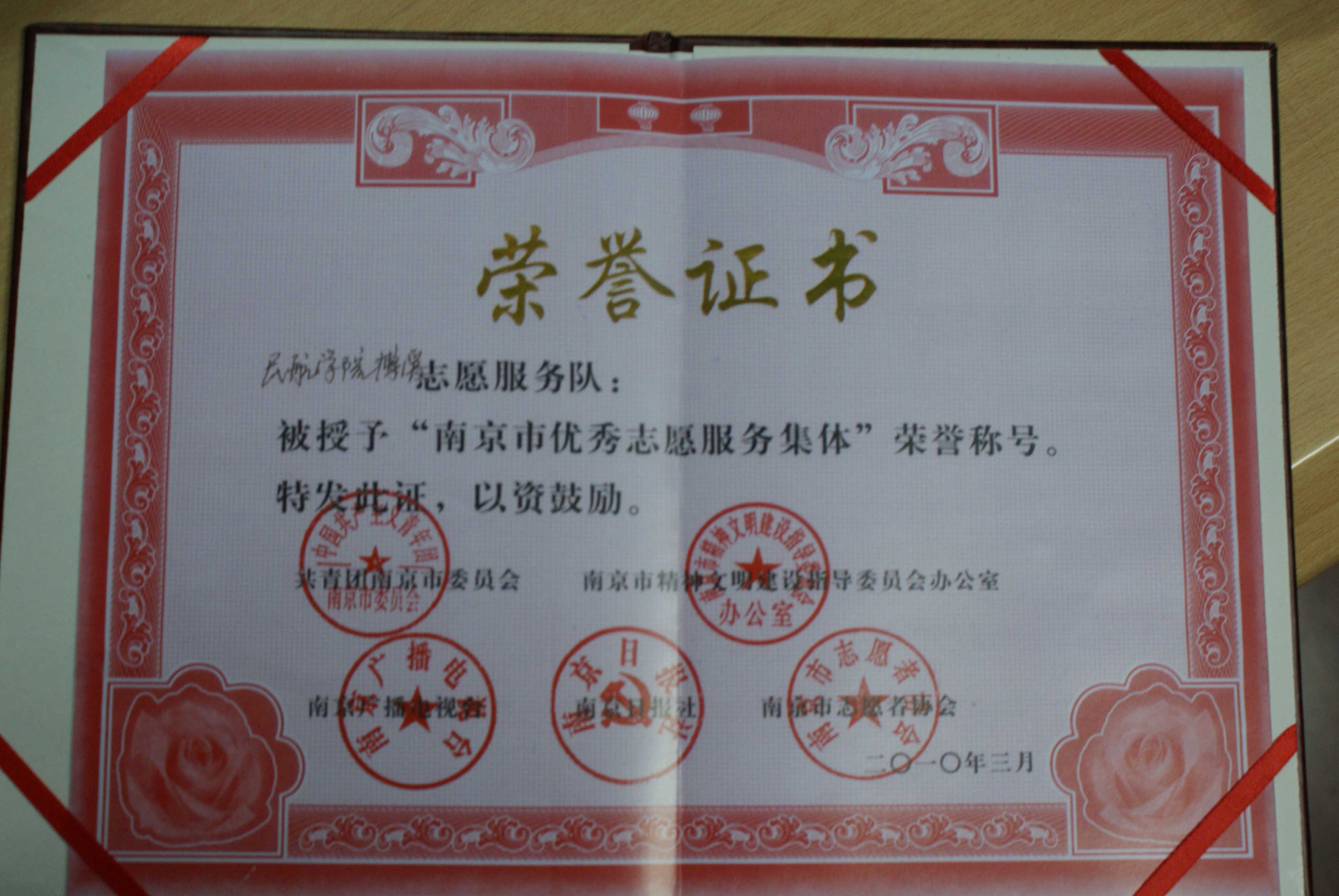 我院荣获“南京市优秀志愿服务集体”荣誉称号