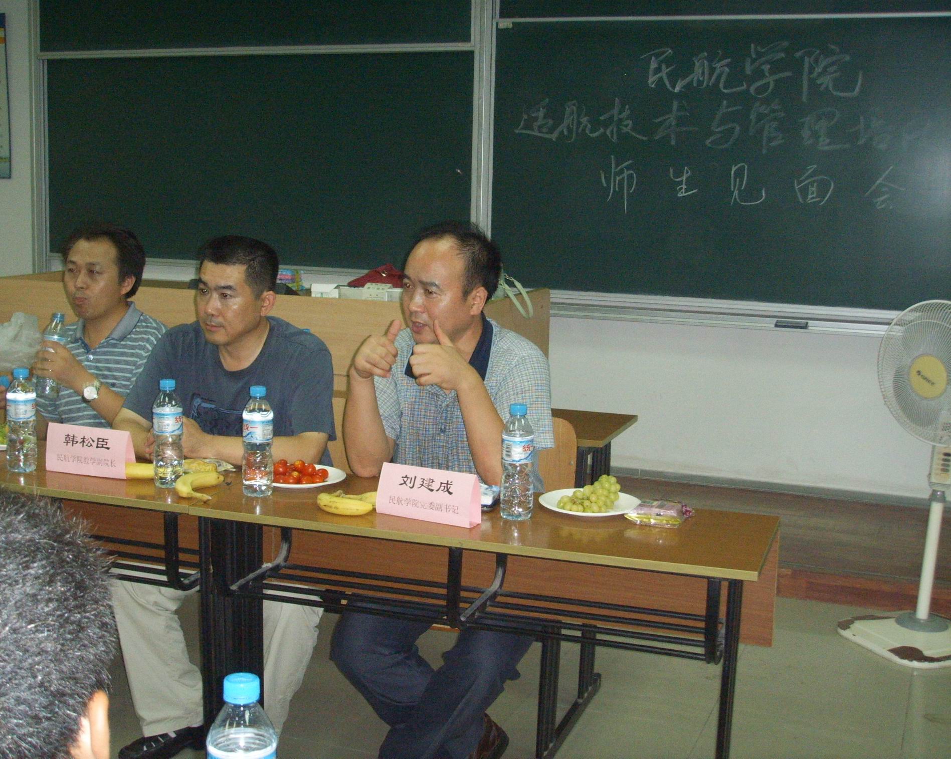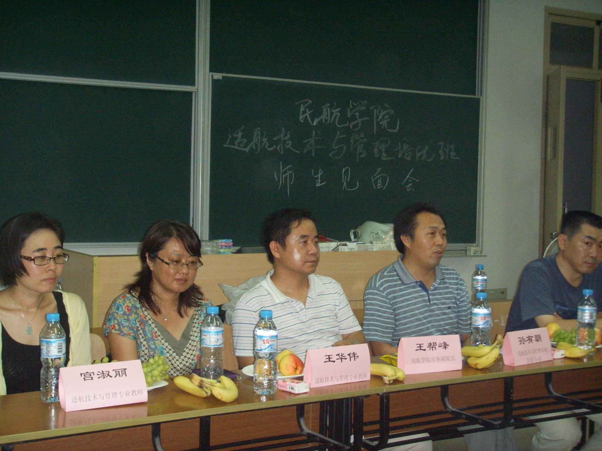2010年9月22日晚7:00,二次元 10级适航管理与技术培优班以座谈会的形式举行了一次别开生面的师生见面会。活动由学院党委副书记刘建成老师主持,参与见面会的还有学院常务副院长王帮峰教授,学院教学副院长韩松臣教授,适航专业首席导师孙有朝教授,教学管理办公室主任王华伟老师,民航工程系党支部书记宫淑丽老师,适航班班主任吴红兰老师以及适航班辅导员夏昌青老师。