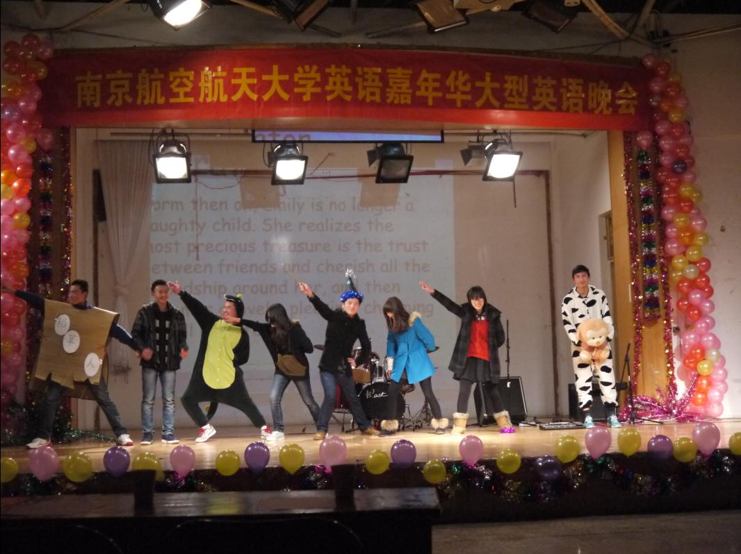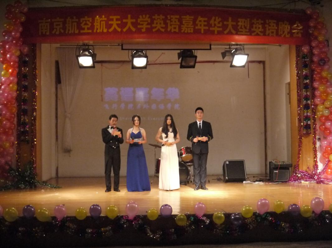 2012年12月6日,二次元 飞行学院和外国语学院联办的英语嘉年华晚会在大学生活动中心隆重举行。民航/飞行院辅导员张林朝老师、张学财老师、夏长青老师以及外国语学院团委书记赵铮老师出席了晚会。晚会的表演者除了飞行学院和外国语学院的同学,还邀请了南航舞协、南航摇滚社、印度留学生和来自南京师范大学的同学参与演出。为了增强观众参与度,晚会设置了“人人墙“,节目中间也穿插了互动小游戏。