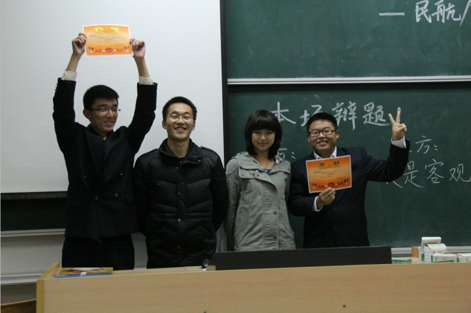 2012年12月16日晚20:30,民航/飞行学院“雄辩民航”辩论大赛总决赛在5103教室正式拉开帷幕。701班及飞行员班的辩手们唇枪舌剑,围绕“美是主观还是客观”的话题展开了激烈的辩论,701班终夺桂冠。
