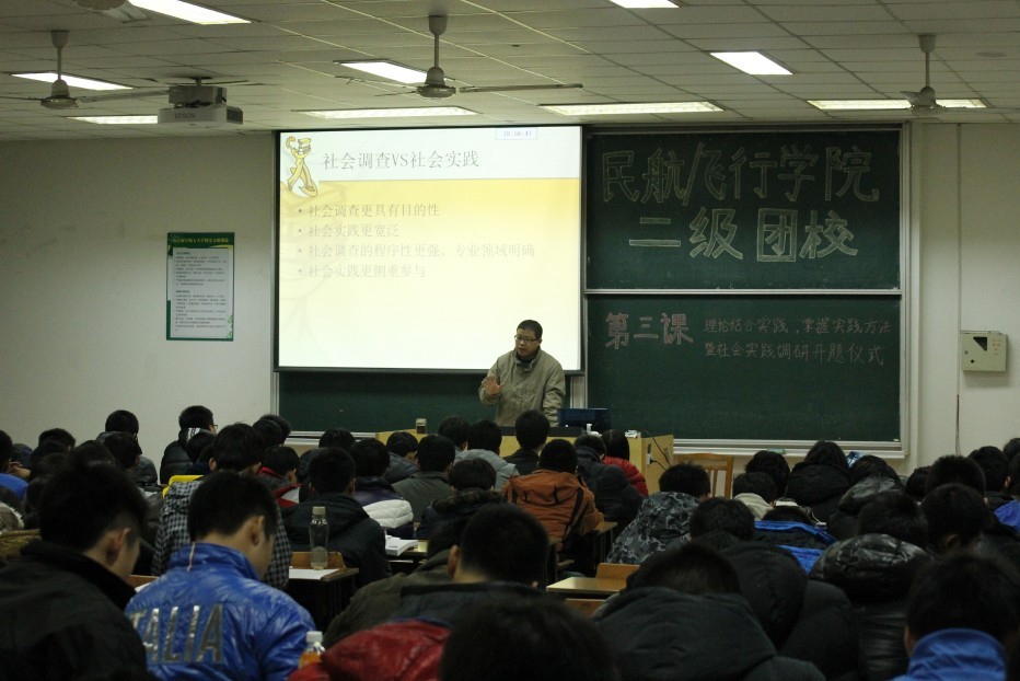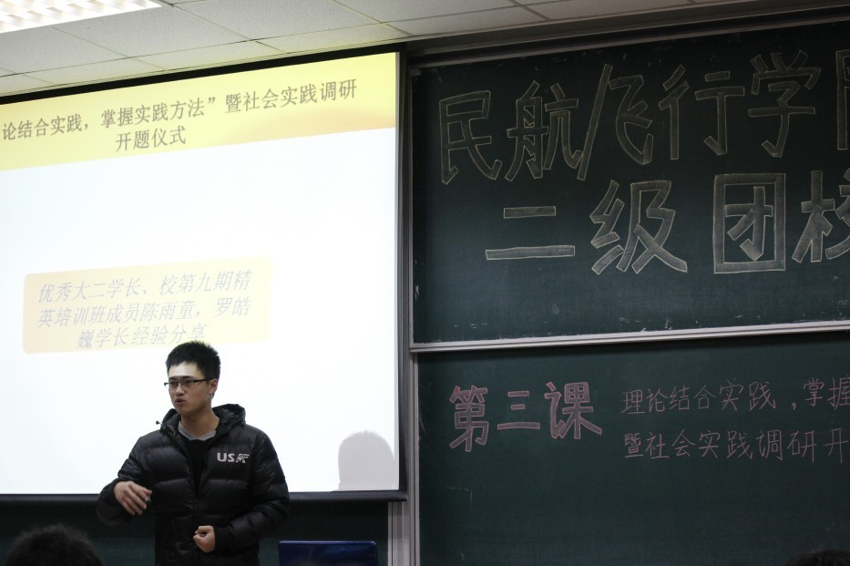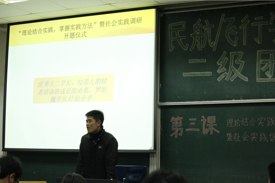 12月20日晚18:30,民航/飞行学院二级团校理论课程第三讲“理论结合实践,掌握实践方法”暨社会实践调研开题仪式在将军路校区6101教室如期拉开帷幕。人文与社会科学学院鲁兴虎老师及部分优秀大二学长参会,全体民航/飞行学院二级团校学员认真听取了社会实践调研的相关理论知识及要求。