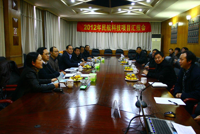 2012年12月12日民航局科技处刘宝树处长一行来我校检查民航局正式批准下达立项的在研民航科技基金项目,学校科技部部长宋迎东教授、学院常务副院长胡明华教授、副院长葛红娟教授以及各项目负责人出席会议。各项目负责人对课题进展、取得成果、经费使用情况,以及后续任务安排等作了汇报,专家对各项目研究过程中的一些疑惑进行了质询,认为我校教师承担的民航科技基金项目紧密结合民航实际需求、成果显著,同时对一些进展相对缓慢的科技项目提出切实可行的建议。