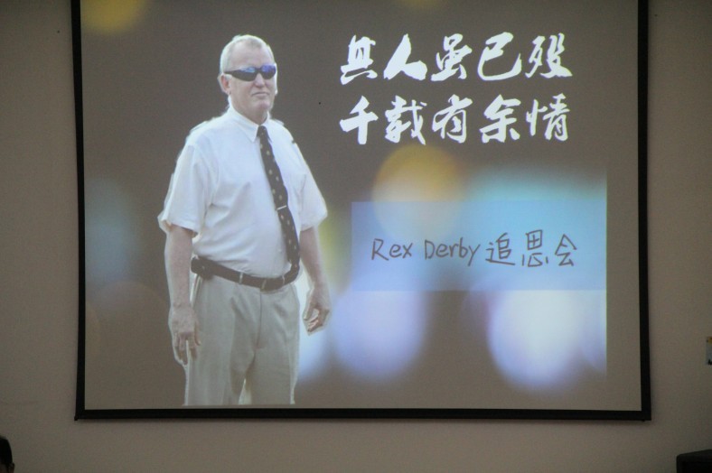 晚7:00,追思会以全体默哀悼念Rex Derby拉开序幕,随后播放的视频详细介绍了了Rex Derby的成长经历和在南航的任教历程,引起了学生的踊跃发言。飞行学员们纷纷讲述他们与Rex Derby老师共同生活学习的点点滴滴,怀念Rex Derby老师敬业的教学风格,思念Rex Derby老师对学生如慈父般的关爱。在场的每一名同学无不静静的聆听,一幅幅感人的画面呈现在大家的脑海里,对恩师的不舍写在大家的脸上,活动尚未进行到一半,现场已是一片悲伤。恩师虽已逝去,但他将永远活在我们的心中,而他感人的事迹也将会永远留在在南航的校园里。