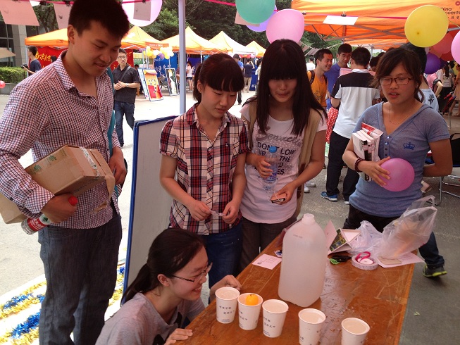 为活跃现场气氛,我院还为这次活动准备了有趣的小游戏,吸引了许多同学驻足参与。只见同学们一个个都专心致志地盯着眼前的乒乓球用力呼出一口气,乒乓球便轻轻地落入前面的杯子里,周围立刻响起一片叫好声。即使没有成功、杯子里的水吹的满脸,同学们也依旧兴致盎然。我们也为积极参与游戏的同学们派发了丰富的奖品。