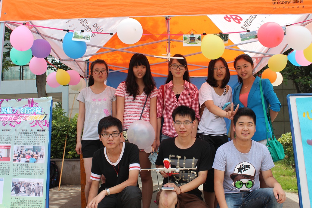 本次活动旨在向全校师生介绍一年来学校以及各个学院心理健康教育工作的开展情况,展示心理气象员风采,向同学们宣传心理知识,增加同学们对心理健康的重视。我院精心布置了会场,顶棚周围用一圈明信片与气球做装饰,展台上飞机模型伫立,展台前展板和手绘海报分立两旁,为大家展示我院这一年来在心理健康方面做出的成果。展台前用彩带和光盘拼成的“seven”字样点缀,在阳光下熠熠生辉。
