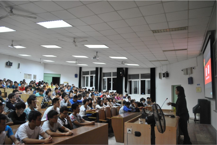 本次团课通过互动话题引导学生们重新认识团员的身份,引导同学们思考“入团动机是什么”和“团组织能够给大家带来什么”这两个问题,并通过四个层次与同学们一起逐级地寻找答案。第一层次,介绍了校级团组织的基本架构及校级各类学生组织;第二层次,通过精选的18张图片简要地回顾了校团委往年举办的一系列精彩活动。创新创业、志愿服务等活动令新生们咋舌惊叹,缤纷多样的校园文化和色彩斑斓的社团活动吸引着新生们的眼球。学校首次推出的心愿卡活动更是让人耳目一新,使新生们感受到校团委为学生服务的良好姿态;第三层次,全面介绍院级团委工作范畴及架构,展示院级各项活动以及取得的各类丰硕成果,引导新生积极参与院级各类活动,历练成长;第四个层次,院级组织学生负责人以个人成长历程为切入点与新生分享在共青团组织中锻炼成长的故事。