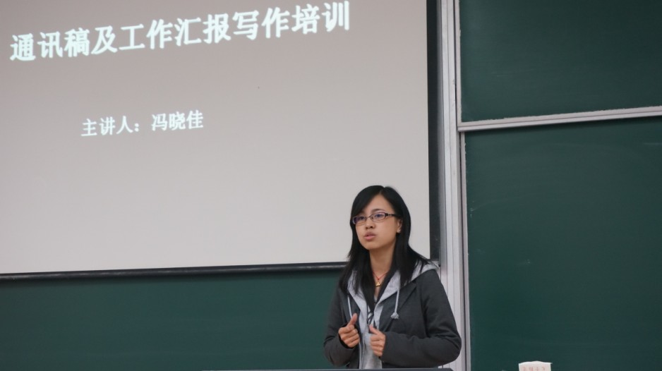 此次活动分三个部分进行。在主持人冯杰进行了简短的开场白之后,曾经在大学期间担任过记者团团长的秘书处成员许振腾为大家讲解了新闻稿和工作总结的写作。他首先从新闻的特性出发,强调了新闻的真实性、时效性和价值性。在简单介绍了新闻之后,为了让同学们对新闻稿有一个直观的认识,他让在场的每一位同学用五分钟的时间写一篇关于此次活动的新闻稿。随后,他对新闻稿六要素进行逐一讲解,要求同学们对照自己写的稿件,找出其中的不足。讲完新闻稿之后,他又给同学们讲了工作总结的写作基础和注意事项。最后他提醒同学们想要写出好的稿件一定要注重平时的积累,多看多读才能做到“文思泉涌”。此次活动的第二部分是秘书部冯晓佳同学主讲新闻稿和工作总结。冯晓佳同学在大学期间曾经担任过大学生活动中心新闻部副部长,有着丰富的写作经验。关于通讯稿,她从通讯稿的格式入手,分别讲解了通讯稿中导语、主题、结尾的写作技巧和注意事项,提醒同学们在写作前要通过采访和各种有效途径获取充实的写作内容,切忌内容空洞和流水账。之后,她又给大家讲解了工作汇报的写作方法,将工作汇报分为综合性报告和专题性报告,并分别讲述其特点和写作的格式。她特别强调了写作工作汇报要求开门见山,语言力求简明扼要。通过她的讲解,许多同学表示以前写工作汇报时遇到的问题现在都已经弄明白了。活动最后,2013级研究生班长董明佳同学对此次活动做了总结。他结合自己的写作经历,给同学们分析了写作能力的重要性,并对两位同学的讲解给予了充分的肯定。